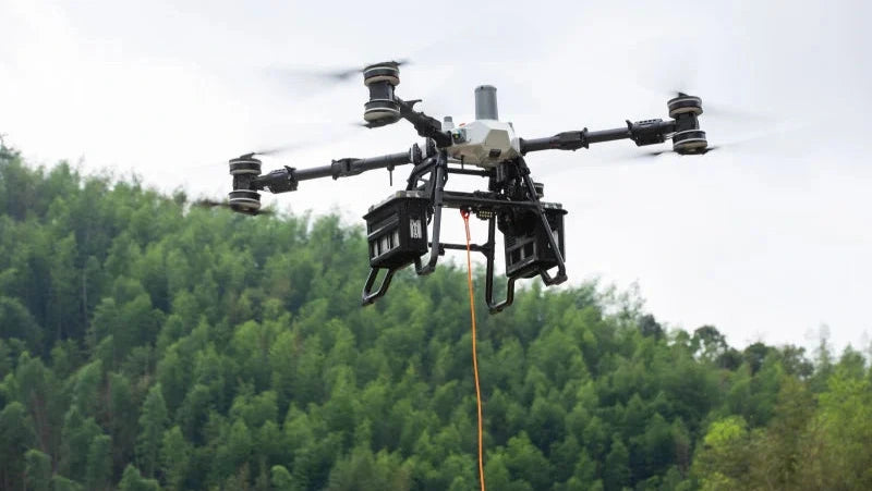 Die optionale Version mit zwei Batterien hat eine Hebekapazität von 80 kg, geeignet für Szenarien, die lange Ausdauer erfordern. Für extreme Situationen, in denen hängende Lasten eingeklemmt oder verheddert werden, gibt es die Möglichkeit, das Kabel zu erhitzen und zu durchtrennen, um die Drohne zu befreien.
